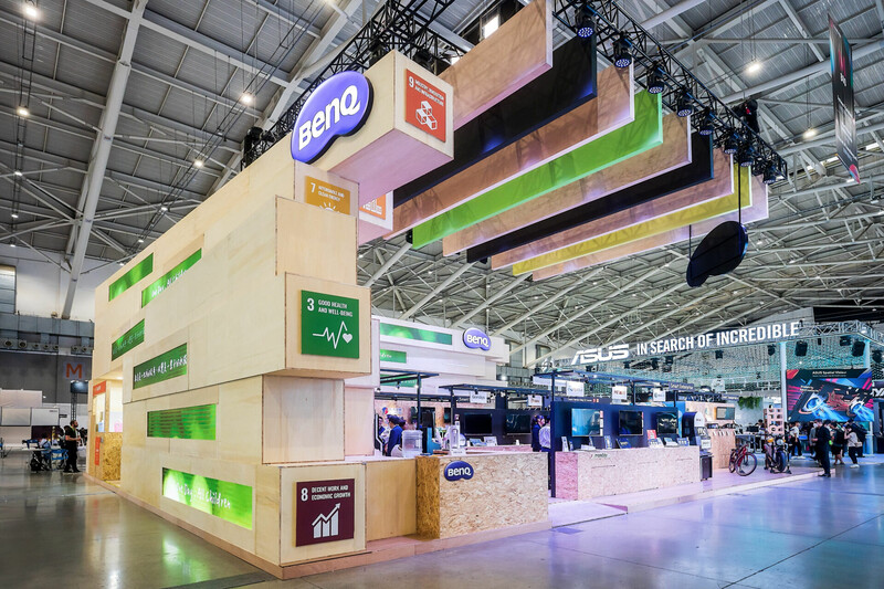 2025 年展館更全面棄用木作,改以模組化鋁架搭建× 創新環保材料為核心,導入鳳梨纖維與再生紙材等新型低碳建材,兼具質輕、耐用與高再利用潛力,成功實現 30% 減碳,評審團更盛讚其挑戰精神榮獲評審特別獎殊榮,表現品牌在模組化、可拆解性和跨品牌協作的企圖心。這份得獎作品延續 BenQ 與光洋波斯特自 2023 年以來的綠色展覽路徑──自 ISO 20121 永續展會標準的導入、2024 年實現零廢棄裝潢,直至 2025 年施工規模擴大仍有效減碳,彰顯對設計創新 × 永續行動長期實踐的決心,光洋波斯特與客戶站在同一陣線共同努力,打造綠色會展,實現企業的淨零展會目標。