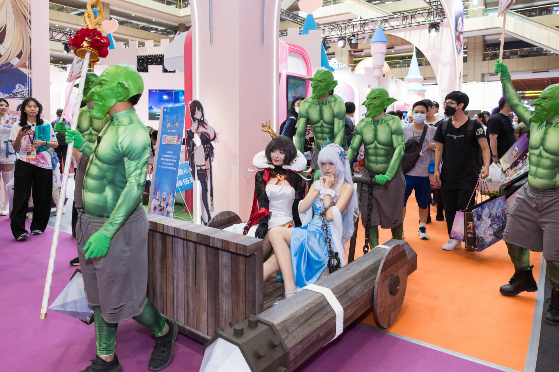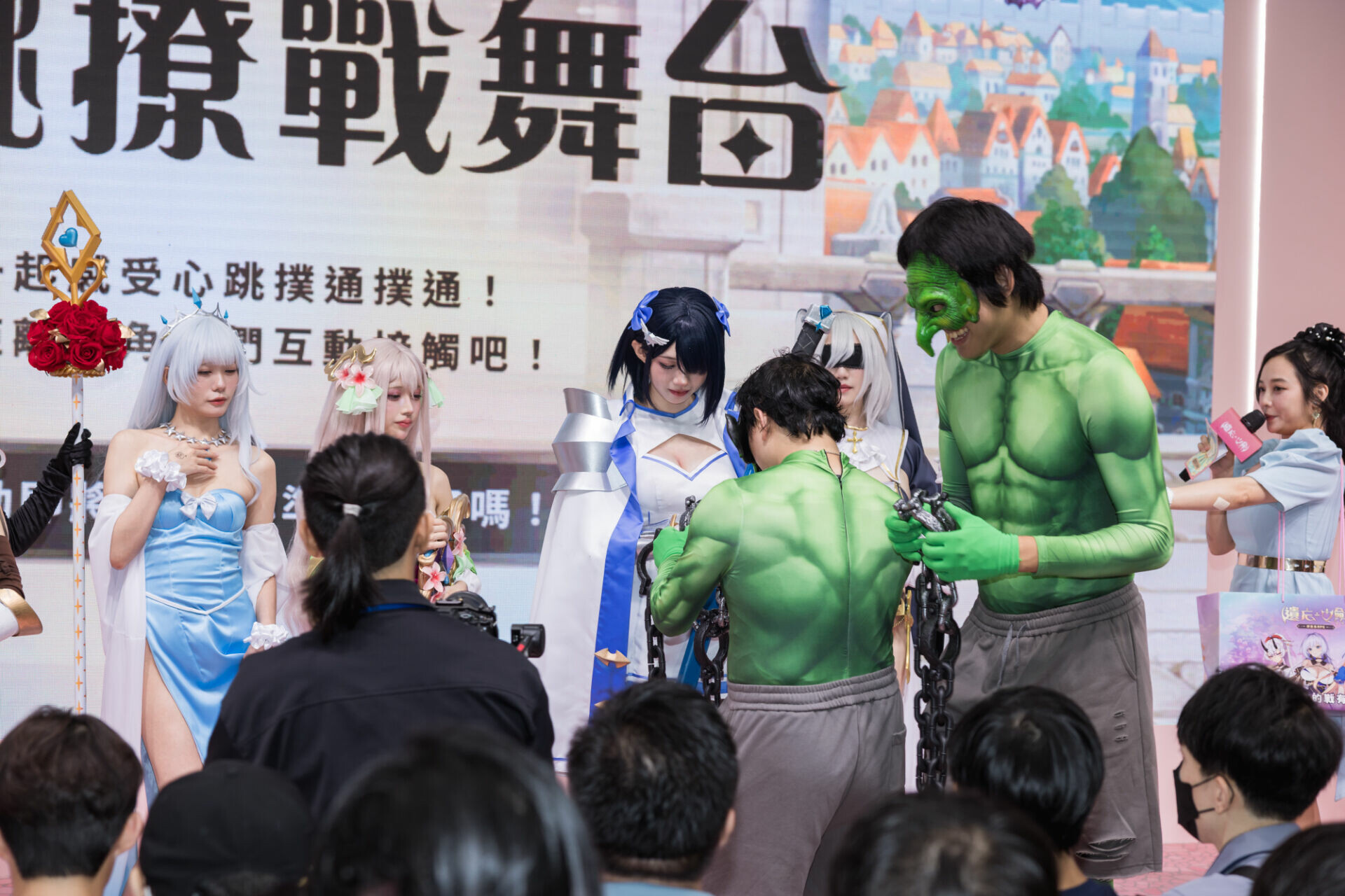 Built around “Ignite Your Desire to Fight” (撩起你的戰有慾), the space mixed striking visuals with interactive fun. Nine top cosplayers brought the heroes to life, while a goblin army escorting a full-scale ‘prison carriage’ paraded around the booth — instantly stealing the show.