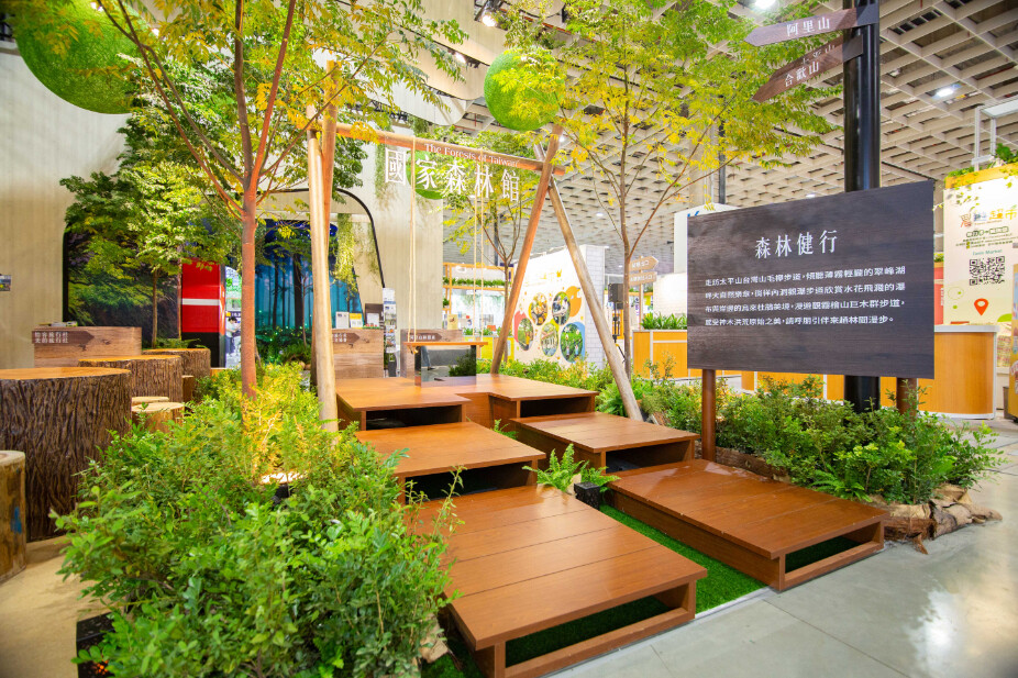 全臺規模最大的 2020 臺北國際旅展,我們協助林保署一同精心籌劃「國家森林館」,向國人介紹臺灣山林四季美景,而在近期因疫情帶來的國旅熱潮下,許多人紛紛開始「親山」,故我們將此次的主題訂為「山在那裡,準備好就去」,並以國家森林遊樂區結合周邊特色設計五感體驗,以「夜觀漫遊」、「花季饗宴」、「林鐵行旅」與「森林健行」四大主題規劃空間設計,透過沉浸式體驗串起森林旅程,凝縮臺灣優美而豐富的風景,帶給參觀者嶄新的清新感受。