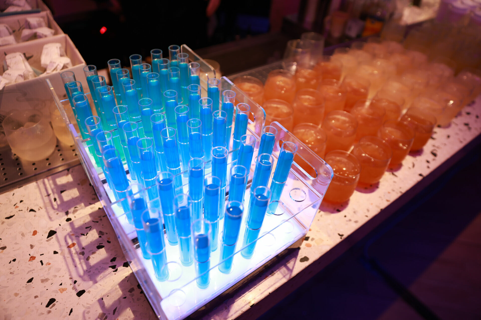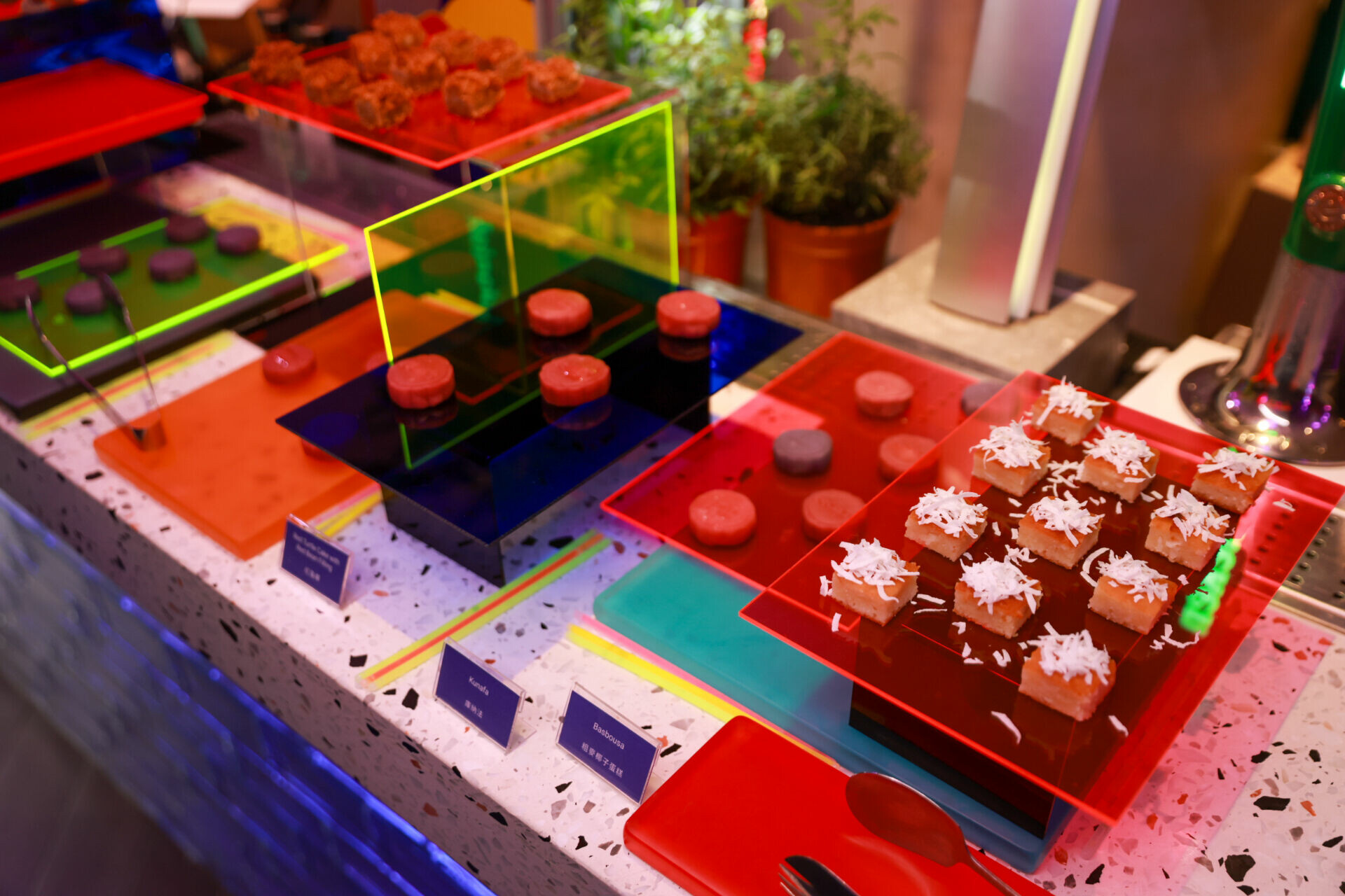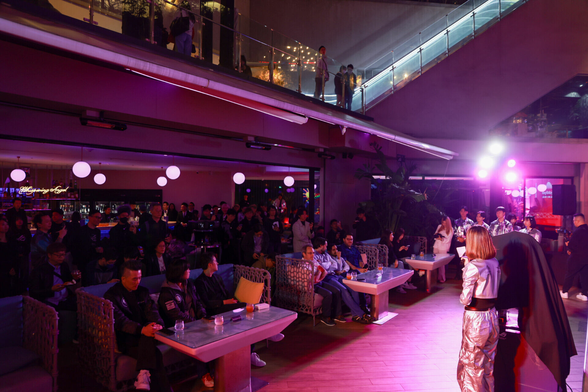 展期首日於信義區熱門酒吧舉行 Qiddiya Night,融合燈光、音樂與數位互動,打造充滿 Cyberpunk 的派對氛圍。以空稜幻境光舞點燃全場,DJ Lynne 與 MC Sean 的演出更讓現場熱度推向高峰。晚宴主題融合台灣與阿拉伯美食,並搭配霓虹器皿呈現,讓視覺和味覺產生新的對話。虛實交錯的場景,讓賓客完全沉浸其中,體現 ROG 和 Qiddiya 的多層次魅力。