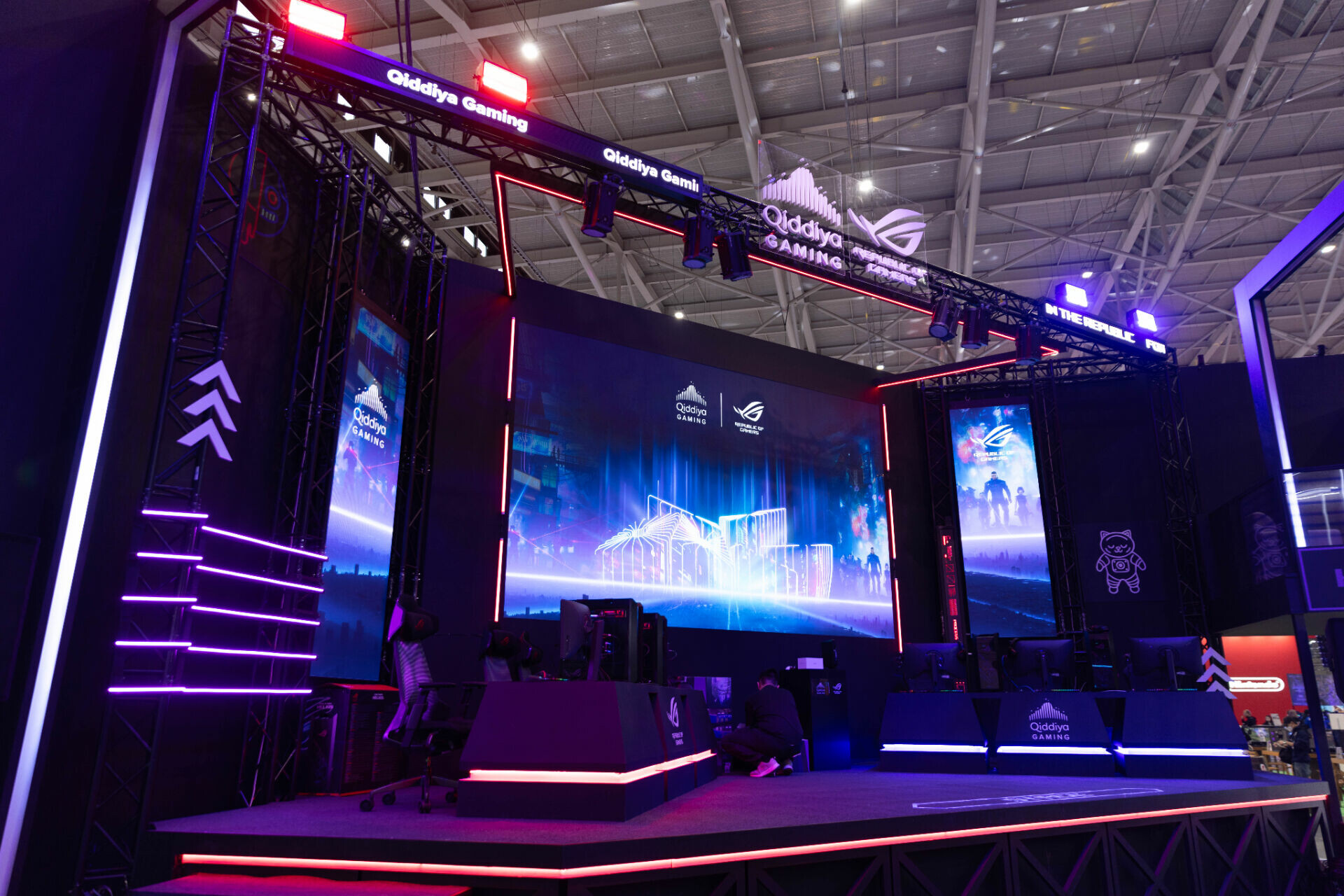 2025年台北國際電玩展於南港展覽館舉行,ROG 玩家共和國首次與阿拉伯娛樂城「奇地亞城(Qiddiya City)」攜手以 Cyberpunk 風格打造電競聖地,展現雙方在電競領域的深厚實力,吸引近9000位玩家入場體驗。