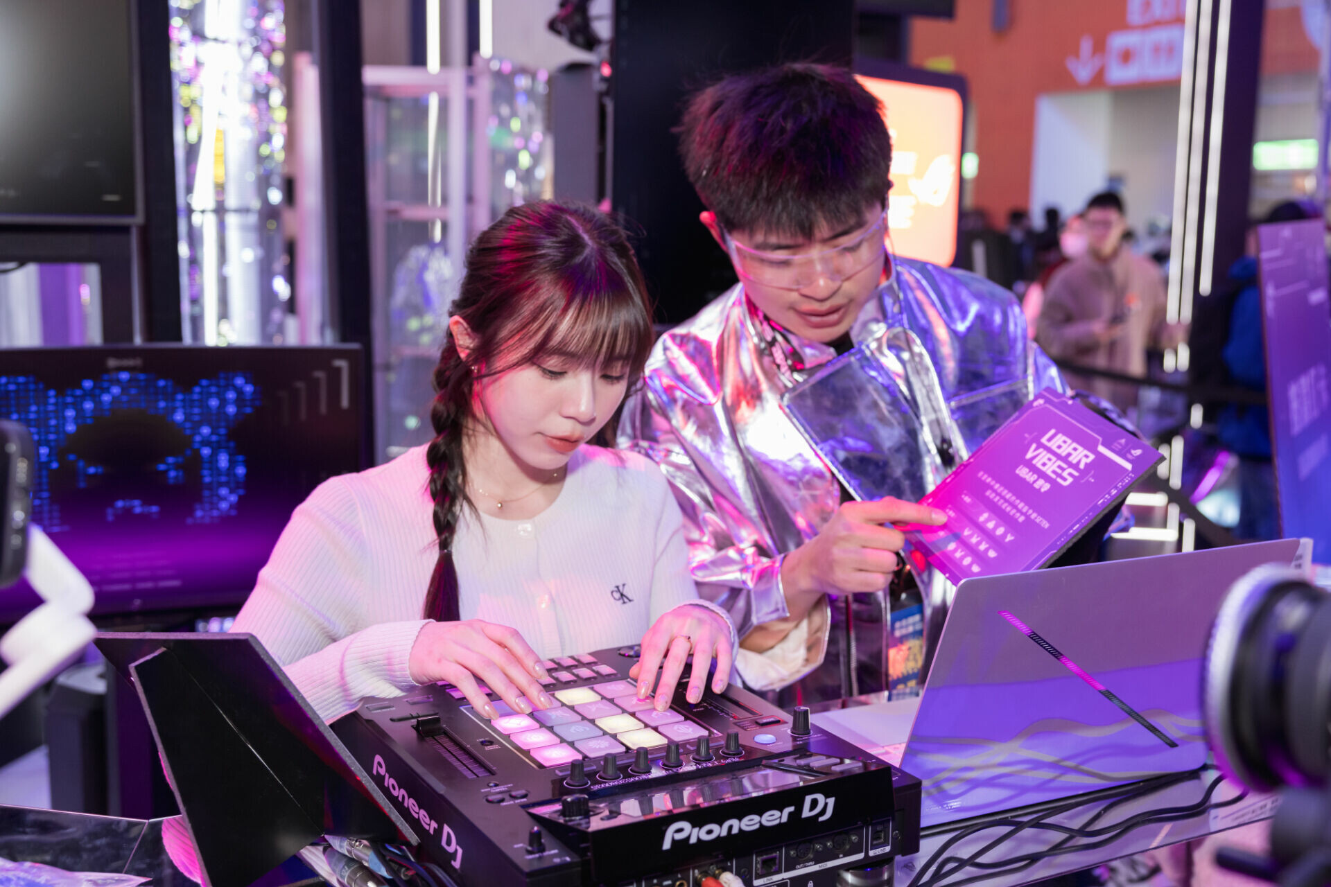 展區以 Cyberpunk 風格呈現 Qiddiya Gaming Village,融合霓虹燈光、動態LED與透明屏,以紫、粉色調營造科幻氛圍。中央設置的數據核心(Data Core)成為場內矚目焦點,周圍串聯 Hacker Bazaar、Neon Alley 等互動街區,讓遊戲體驗與品牌展示無縫融合,展現 ROG 與 Qiddiya Gaming 的電競文化。