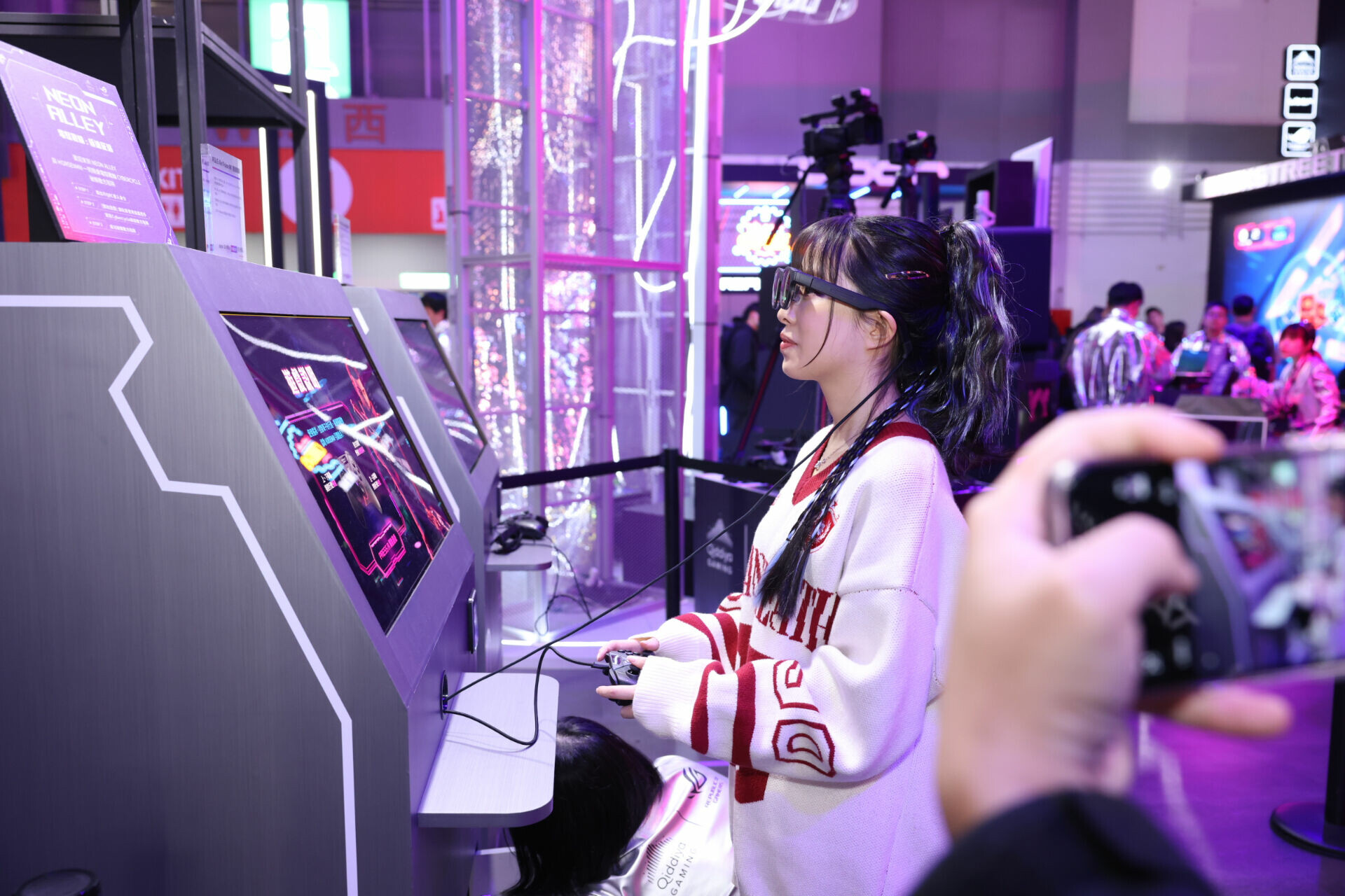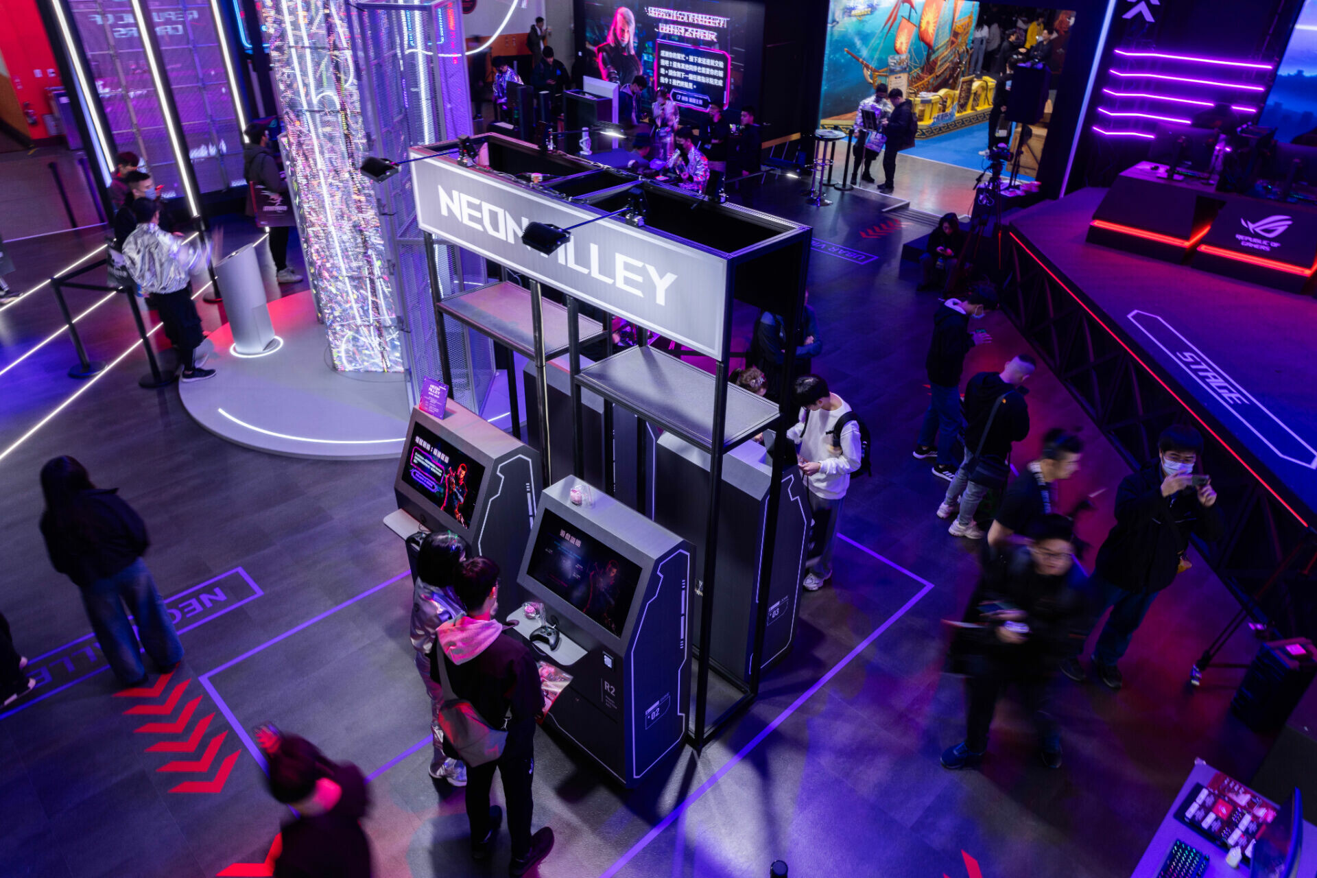 ROG 玩家共和國攜手「奇地亞城(Qiddiya City)」,將 Cyberpunk 風格融入電競體驗,打造全新虛擬世界,展區設計結合霓虹燈光、動態 LED 和透明屏幕,營造出充滿未來感的遊戲氛圍,中央的數據核心成為焦點,並搭配互動區域如 Hacker Bazaar 及 Neon Alley ,讓遊戲與品牌展示無縫接軌。